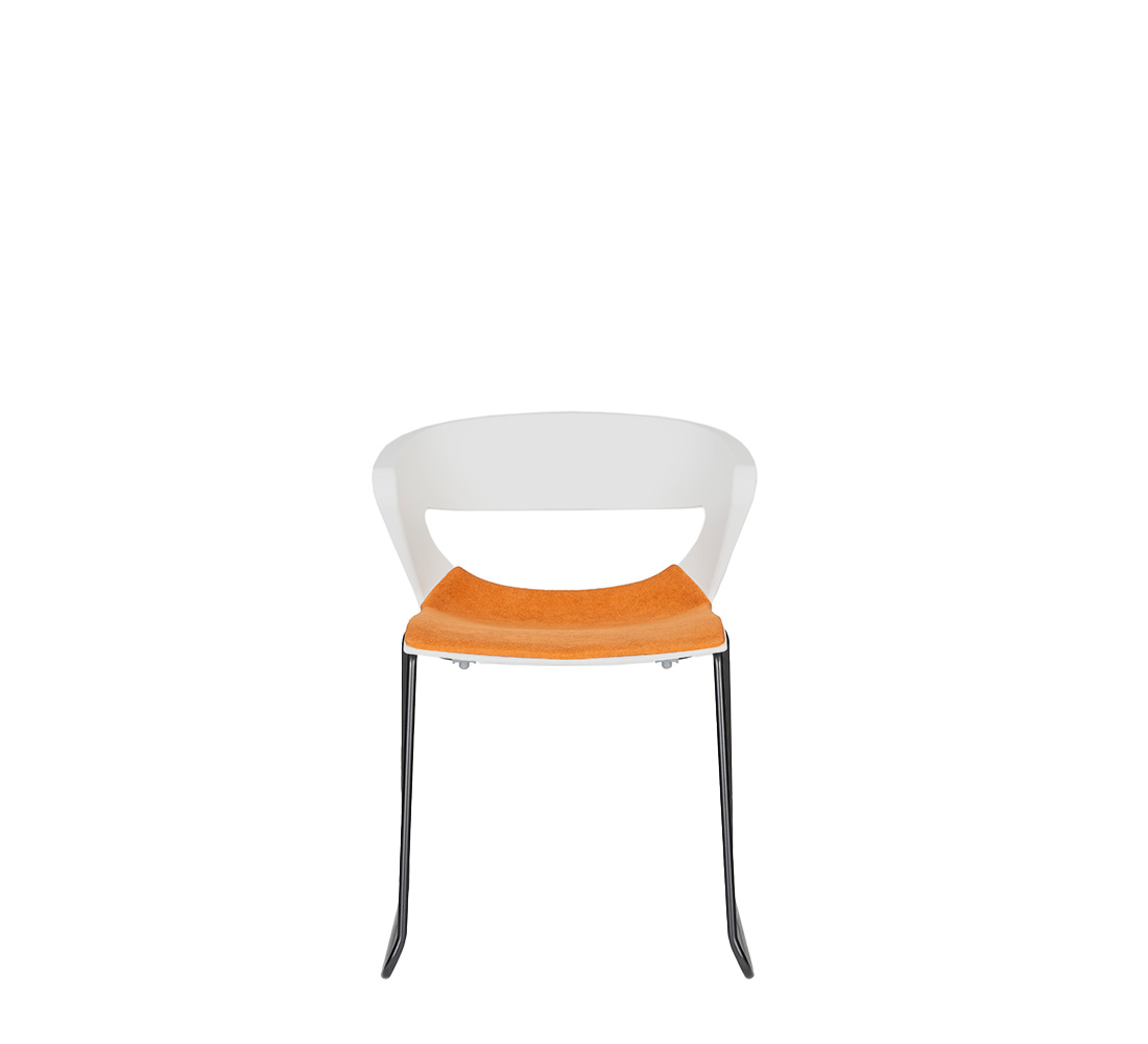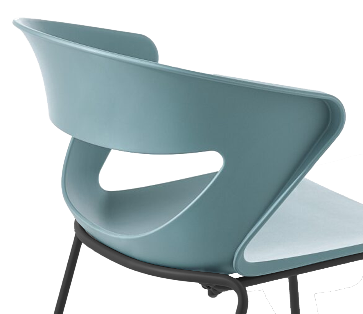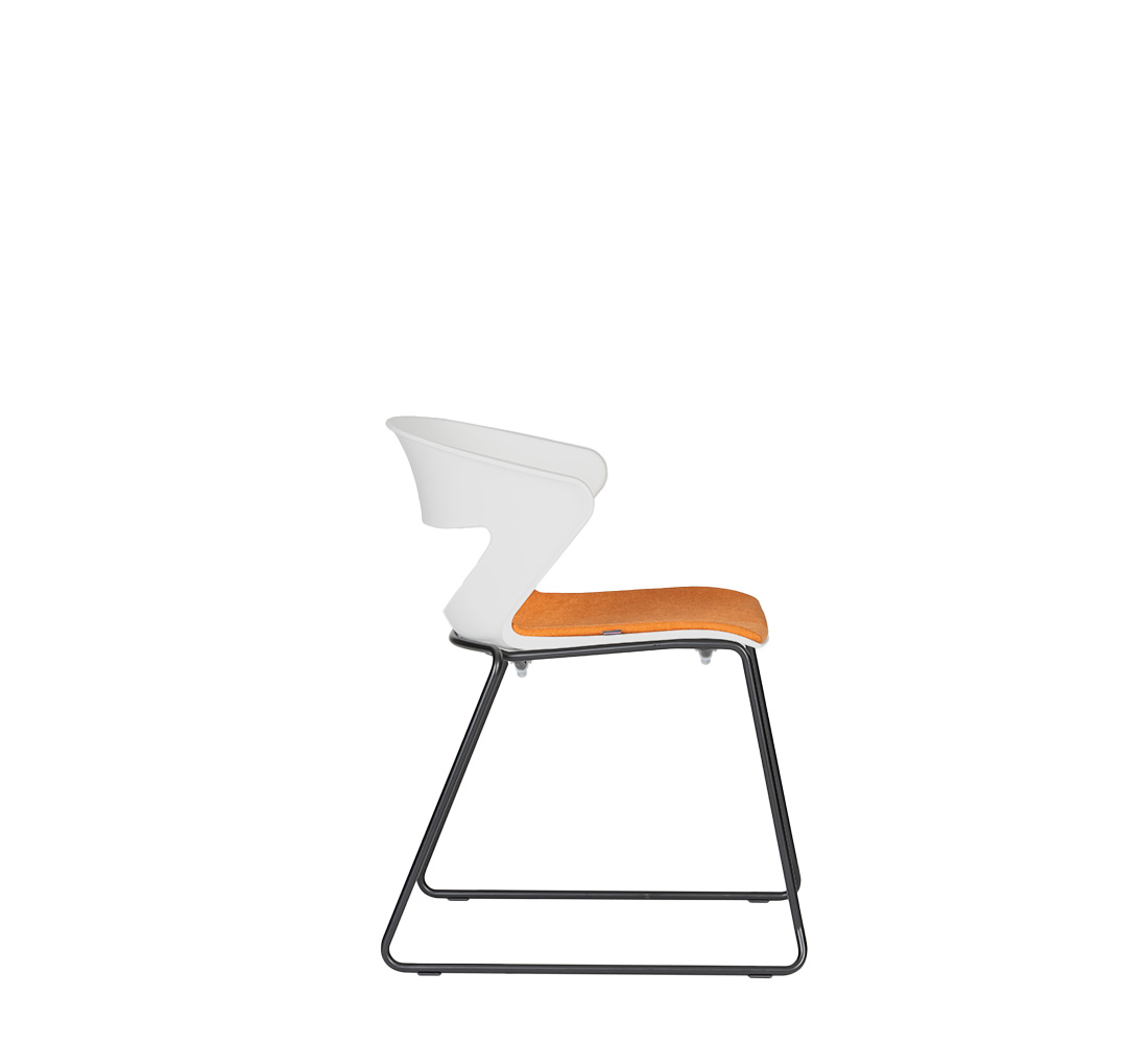 Su base metálica negra tipo trineo aporta un diseño moderno y estable, con opción a asiento tapizado o respaldo y asiento tapizados para mayor confort.
