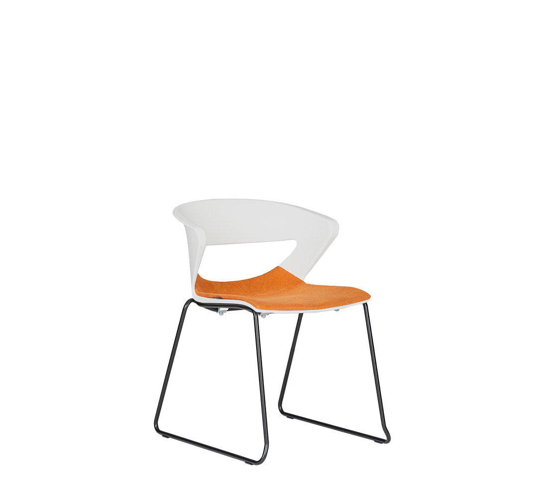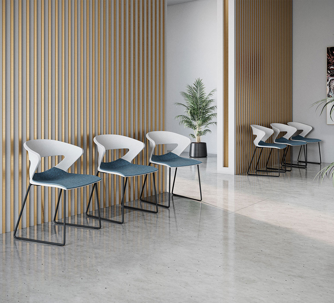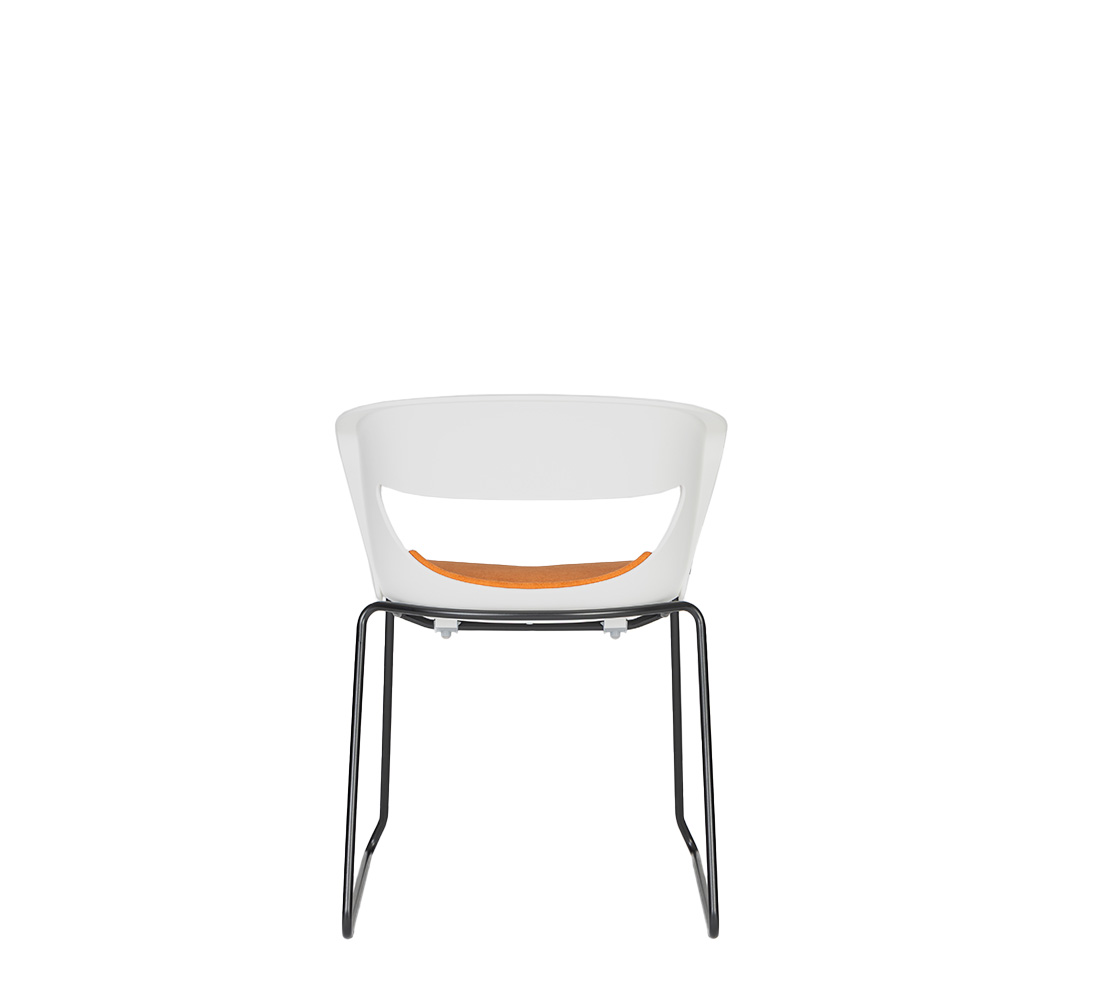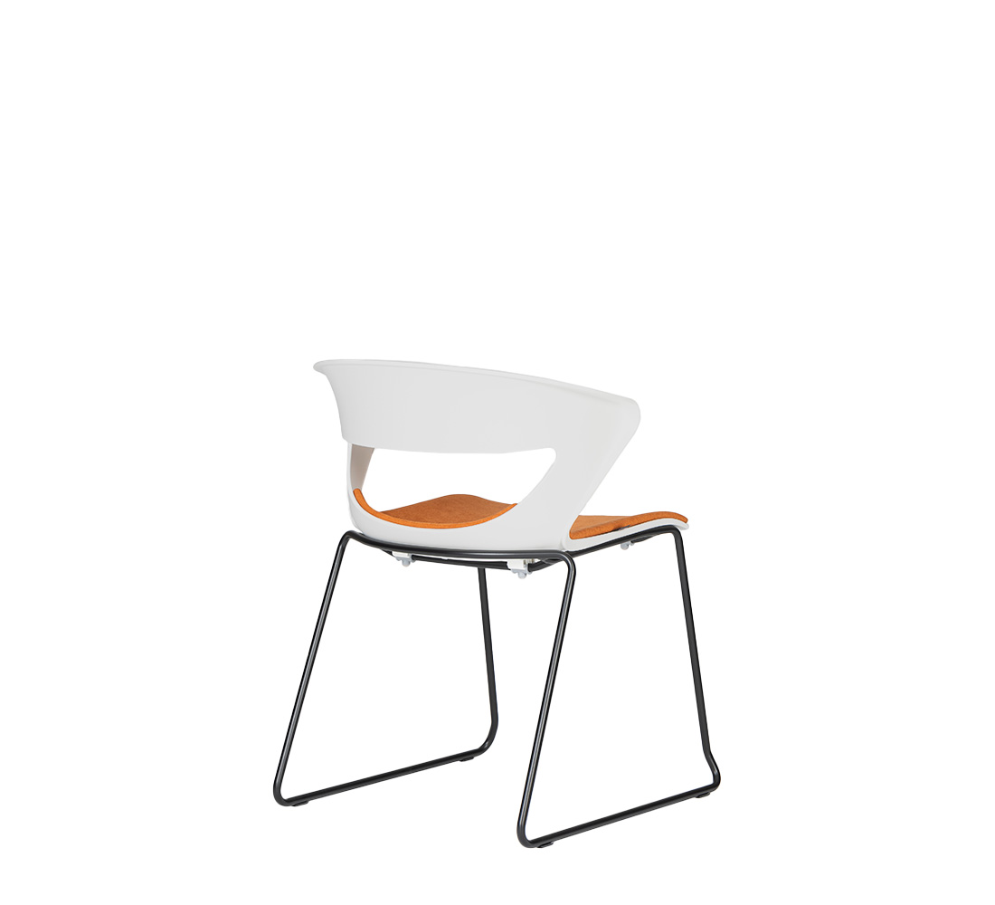 Su base metálica negra tipo trineo aporta un diseño moderno y estable, con opción a asiento tapizado o respaldo y asiento tapizados para mayor confort.