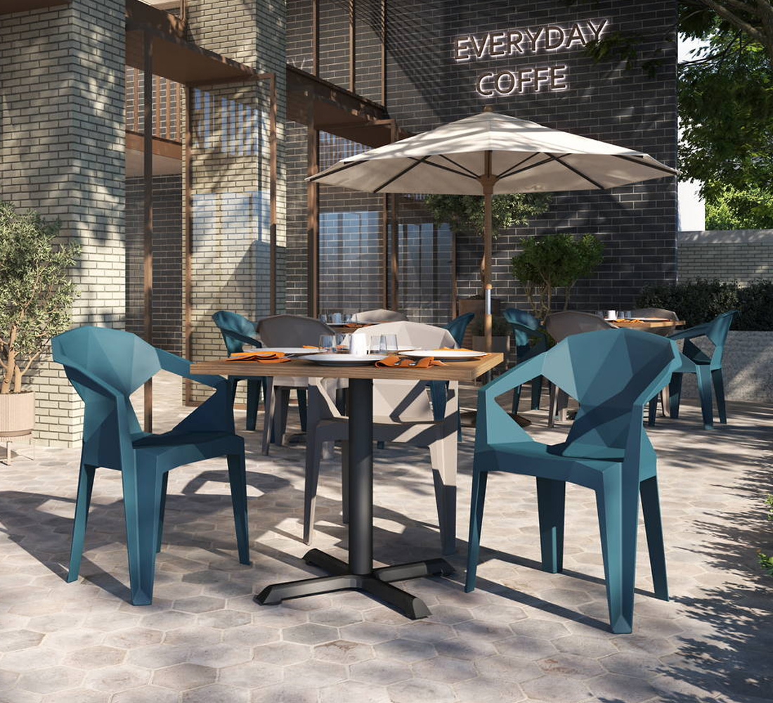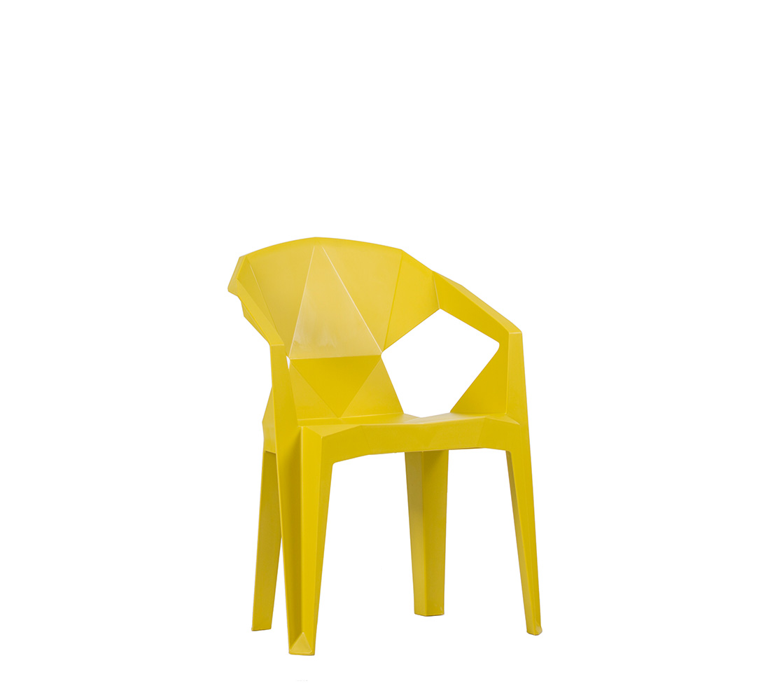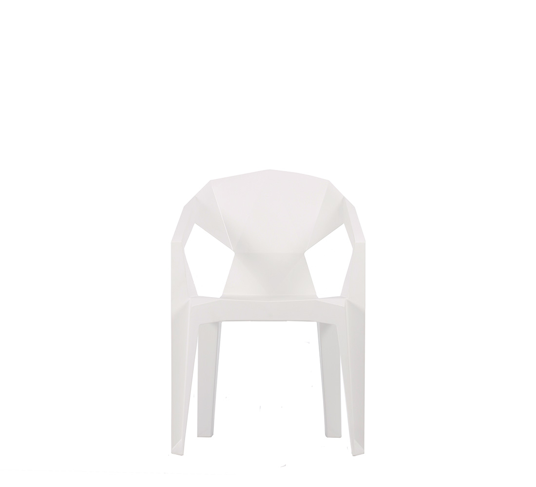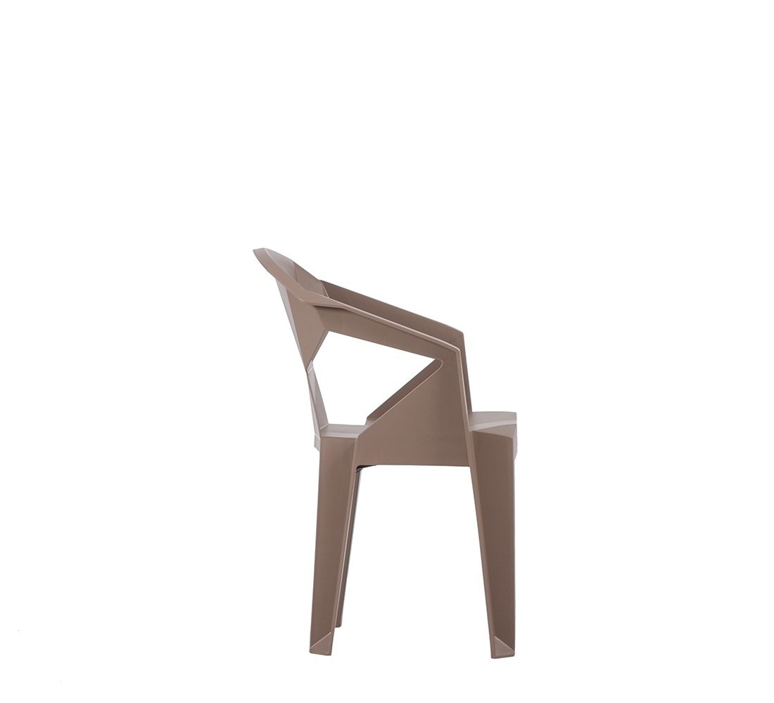 Destaca por su diseño innovador y funcional, fabricada en polipropileno de una sola pieza que garantiza resistencia y durabilidad. Su respaldo geométrico no solo aporta un toque moderno, sino que también ofrece comodidad ergonómica.