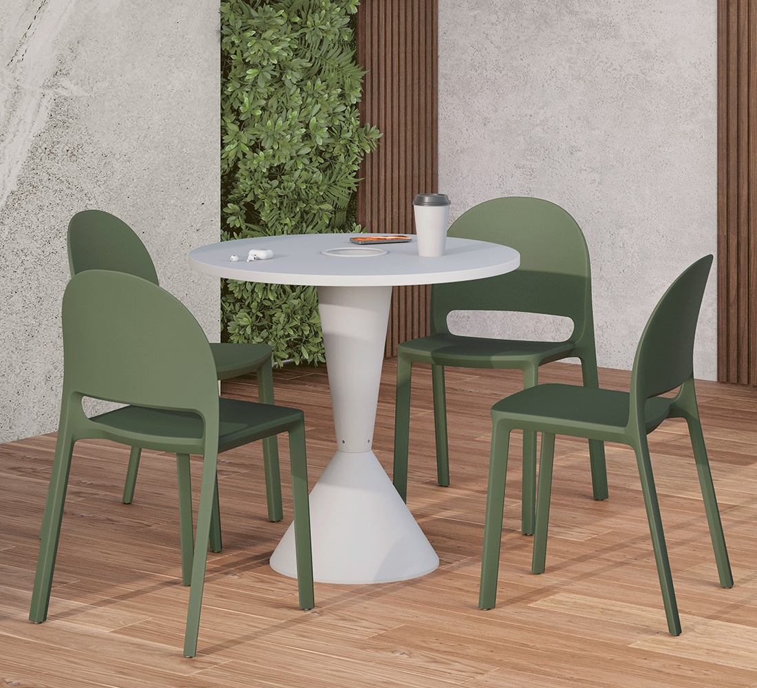 Fabricada en una sola pieza de polipropileno monobloque que garantiza resistencia y durabilidad. Diseñada especialmente para exteriores, es resistente a rayos UV y su practicidad aumenta al ser apilable.